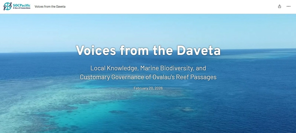 The four USP students in the SOCPacific2R project – Dev, Matina, Sarah-Fina and Watesoni – have just published their second interactive StoryMap on reef passages around Ovalau, Fiji, showcasing their ongoing research on these ecological and cultural keystone places.